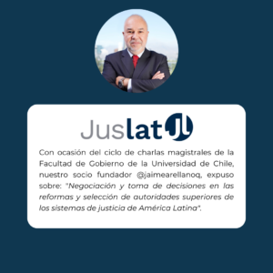 Con ocasión de la inauguración de un ciclo de charlas magistrales de la Facultad de Gobierno de la Universidad de Chile, nuestro socio fundador de JUSLAT, Jaime Arellano, dictó una ponencia sobre: “Negociación y toma de decisiones en las reformas y selección de autoridades superiores de los sistemas de justicia de América Latina”.